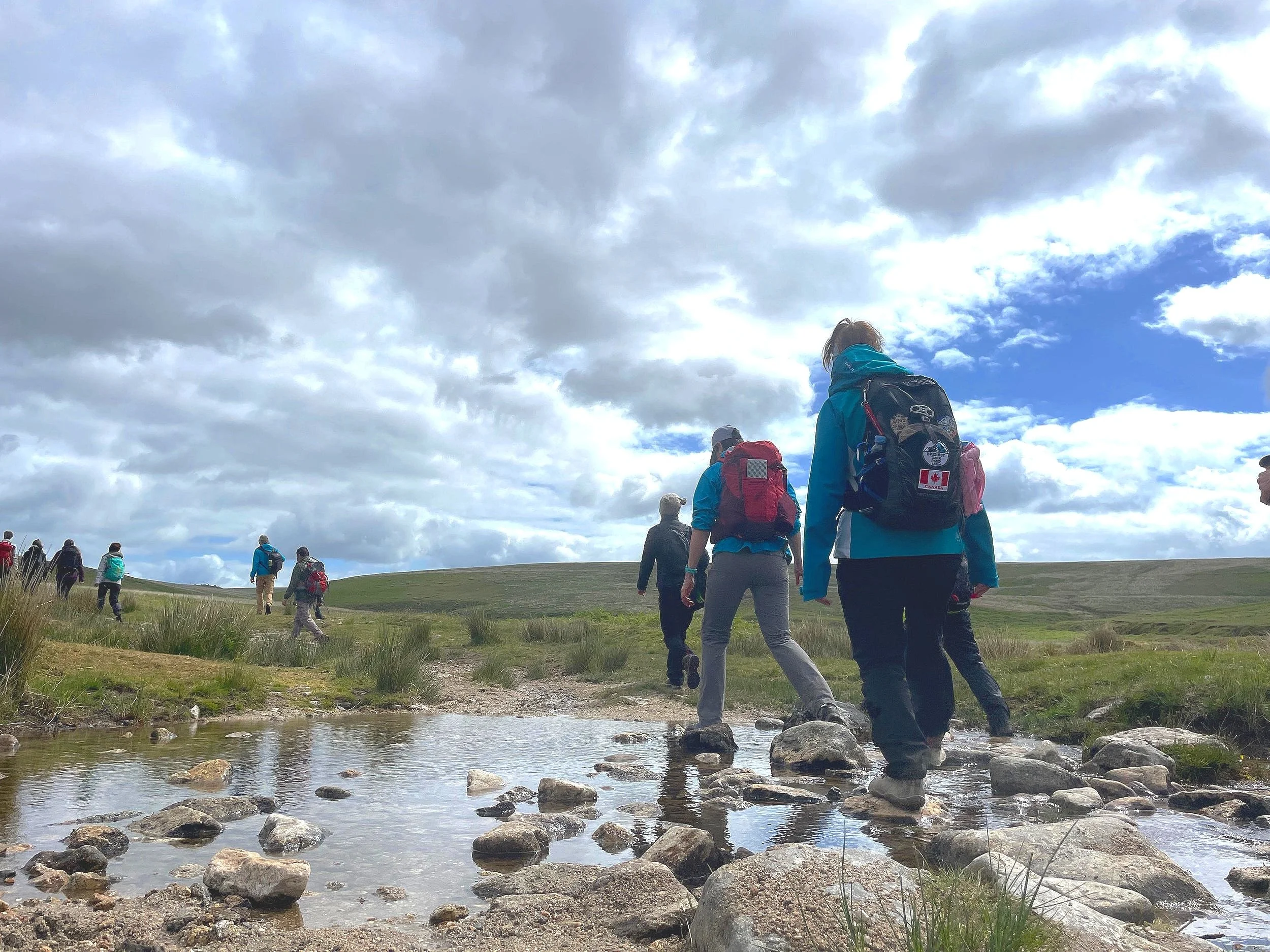 On Day 2, we split into vehicles and headed south across Dartmoor, around a 1-hour drive. The landscape is so vast and varied, it was perfect to see a different side of Dartmoor, lush, green hills. It was a very well throughout route, covering over 14km with 500m of total ascent, reaching several tors including Gutter Tor and Down Tor, and suited for all abilities.